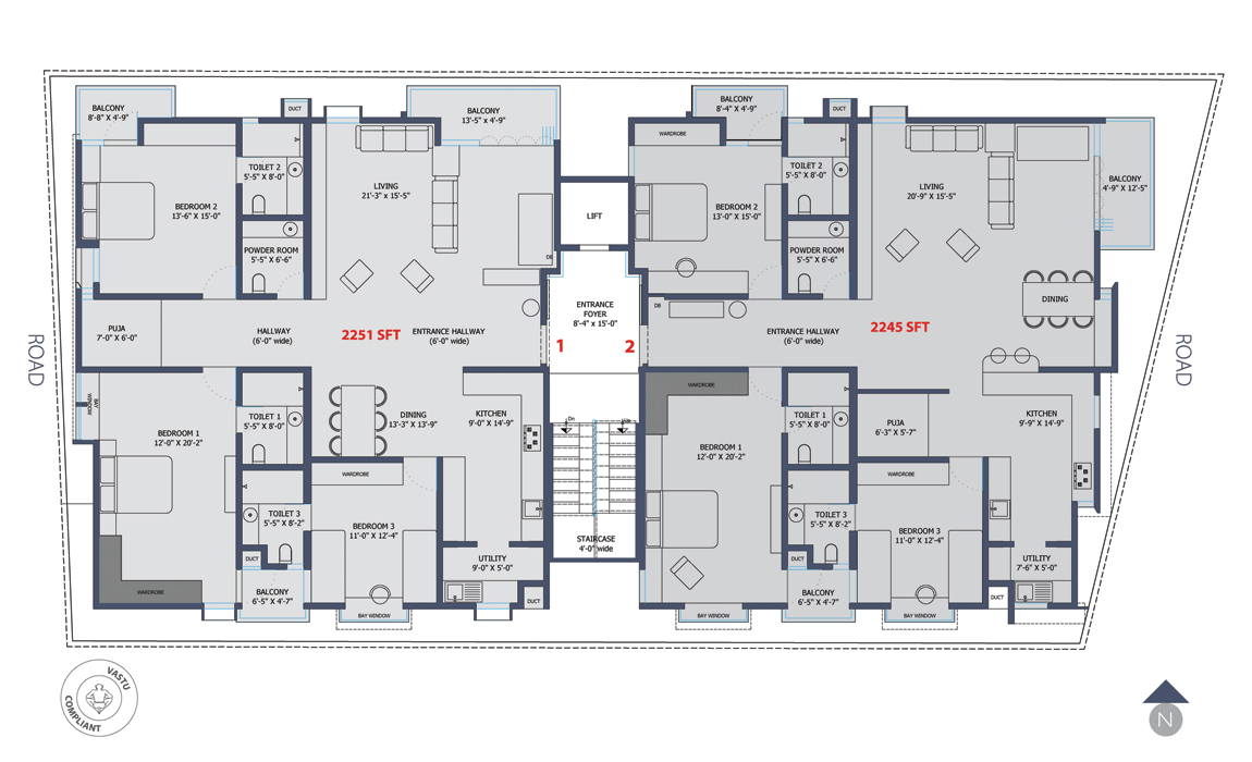 Planned with spacious lifestyle as the center of focus, these Spacious 3BHK Premium Residences are a delight to live in. Each corner of these residences is thoughtfully designed to ensure a premium living experience. The residences are Vastu compliant too allowing you to live a peaceful and joyous life.